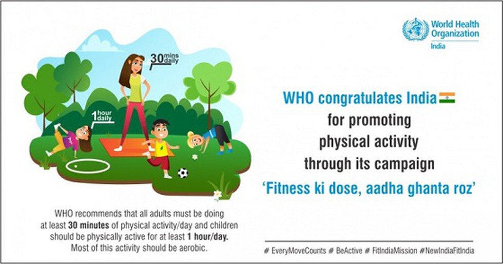 FITNESS KA DOSE AADHA GHANTA ROZ CAMPAIGNWorld Health Organisation applauds India for Fitness Ka Dose Aadha Ghanta Roz campaign.